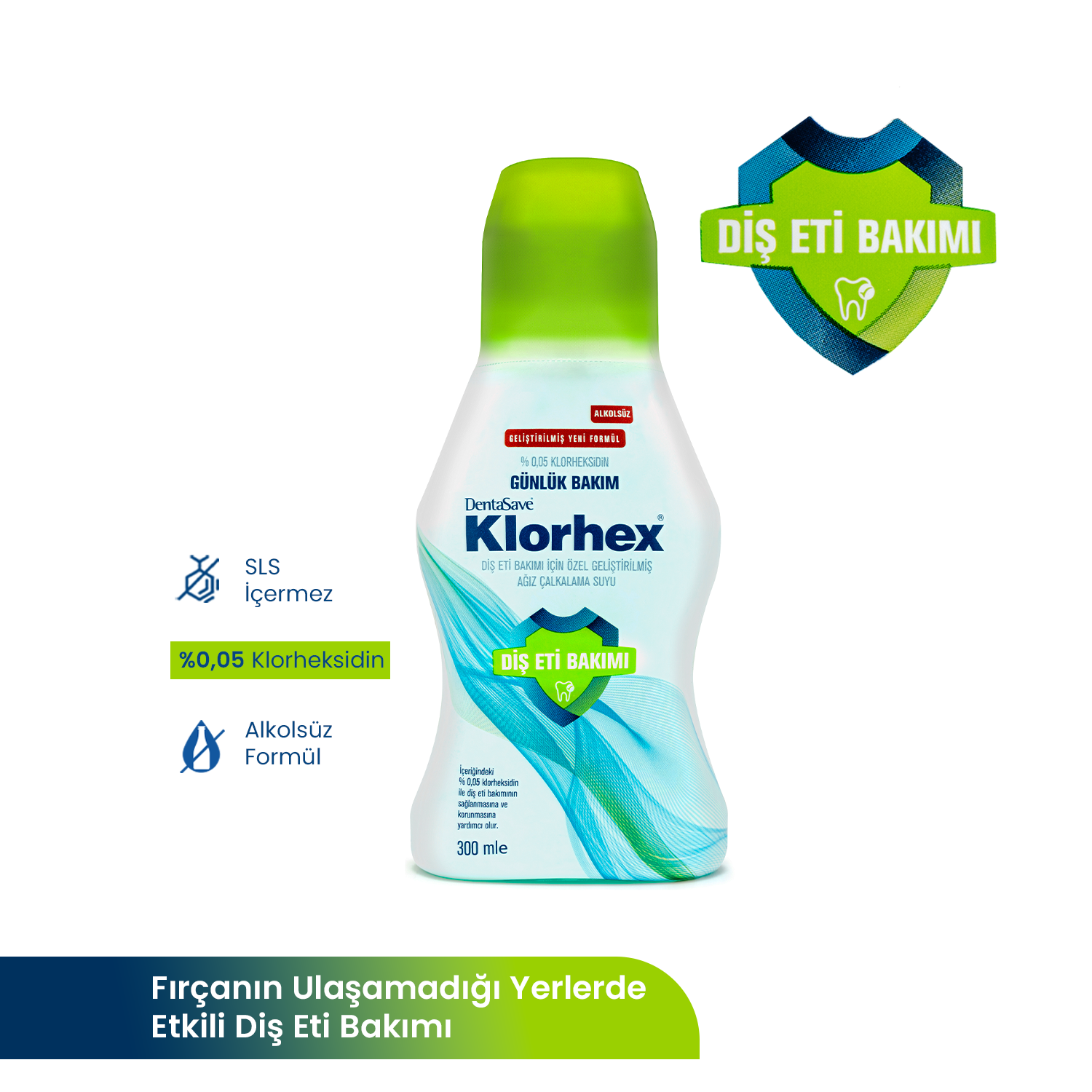 DentaSave Klorhex Günlük Bakım Ağız Çalkalama Suyu, diş eti sağlığınızı desteklemek ve ağız hijyeninizi mükemmelleştirmek için geliştirilmiştir. İçeriğindeki %0,05 Klorheksidin ile diş eti bakımınızı desteklerken, alkolsüz formülü sayesinde ağzınızı yakmadan nazikçe temizler. Geliştirilmiş yeni formülüyle en dar diş aralıklarına bile nüfuz ederek gün boyu süren bir ferahlık ve koruma kalkanı sunar.